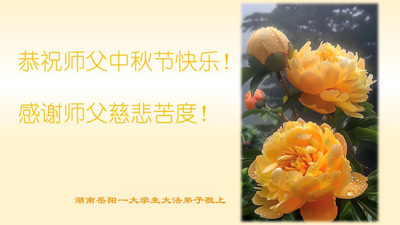 湖南科技大学大法弟子敬上 湖南岳阳一大学生恭祝师父中秋节快乐!