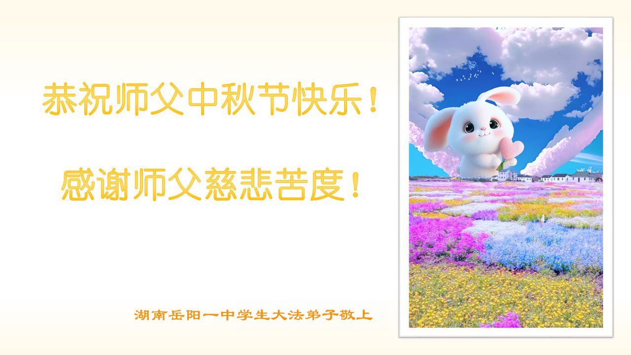 【明慧网二零二四年九月十七日】 湖南省湘潭、常德石门、湖南科技大学大法弟子恭祝师尊中秋快乐!