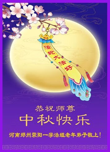 河南省郑州一青年大法弟子敬上 河南郑州荥阳市一学法小组老年大法弟子恭祝慈悲伟大的师尊中秋节快乐!
