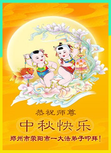 一年一度又逢中秋,仅此月圆之时,河南郑州一学法小组大法弟子遥祝伟大的师尊中秋快乐!千言万语,尽在不言中,跪拜师尊! 河南省郑州一学法小组大法弟子敬上 河南省郑州市一大法弟子恭祝师尊中秋快乐!