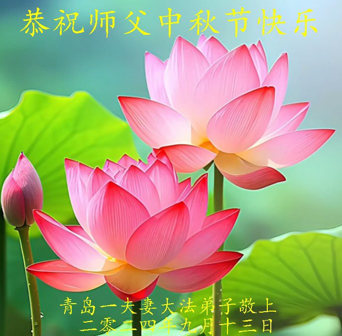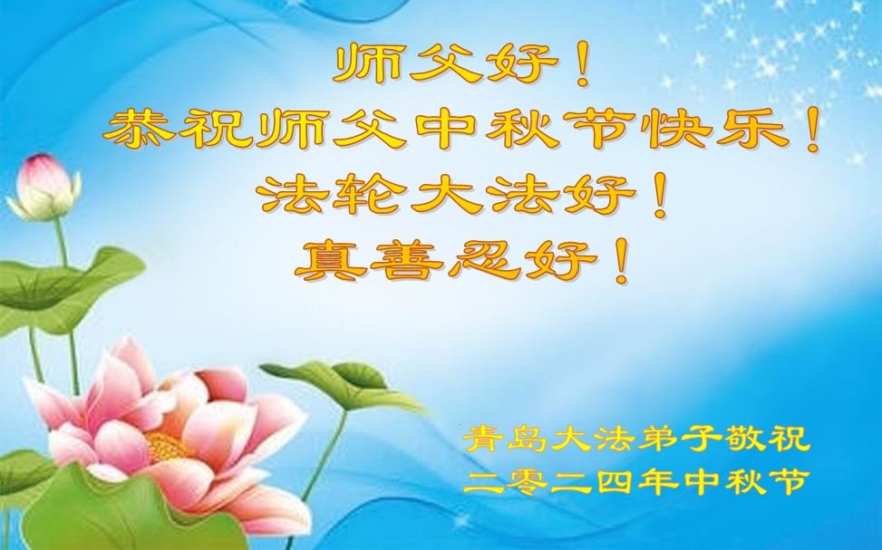 【明慧网二零二四年九月十七日】 山东省青岛市崂山区金家岭街道一青年大法弟子恭祝师尊中秋快乐!