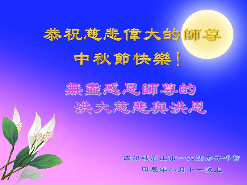 恭祝师父中秋快乐! 四川省乐山市中区俩学法小组全体大法弟子敬上 四川省绵阳市科学城俩老年大法弟子恭祝师父中秋快乐!