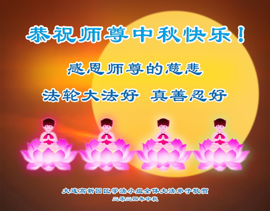 【明慧网二零二四年九月十七日】 辽宁省大连高新园区学法小组全体大法弟子恭祝师尊中秋快乐!