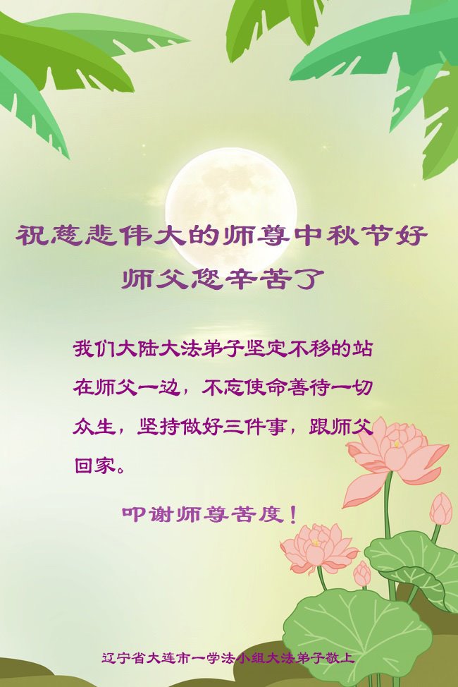 辽宁省大连大法弟子一恭祝伟大慈悲师尊中秋节快乐!