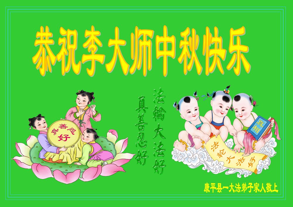 感恩李大师洪传大法,使我们都在大法中受益,我们也能按着真善忍做个善良的人。 辽宁沈阳市康平县一大法弟子家人恭祝李大师中秋快乐!