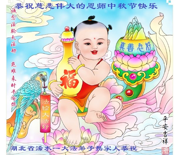 感恩师尊慈悲救度!弟子一定修好自己,做好三件事,多救世人,兑现誓约,跟师尊回家。 湖北随州市大法弟子恭祝师尊中秋快乐!