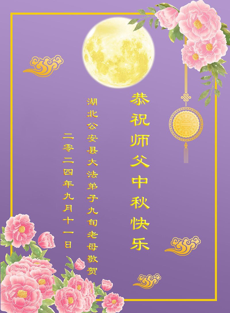 【明慧网二零二四年九月十七日】 湖北省黄冈市浠水县一大法弟子携家人恭祝师尊中秋节快乐!