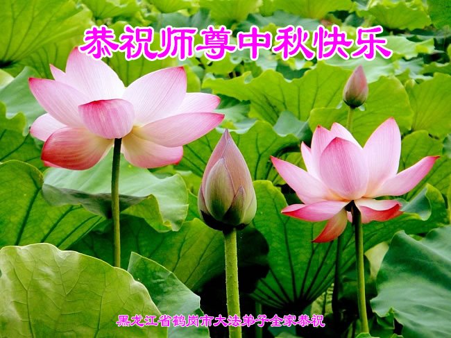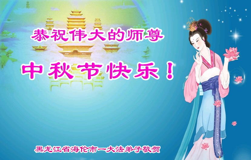 恭祝伟大的师尊中秋节快乐! 黑龙江省海伦市一大法弟子敬上 黑龙江省鹤岗市全体大法弟子恭祝师父中秋节快乐!
