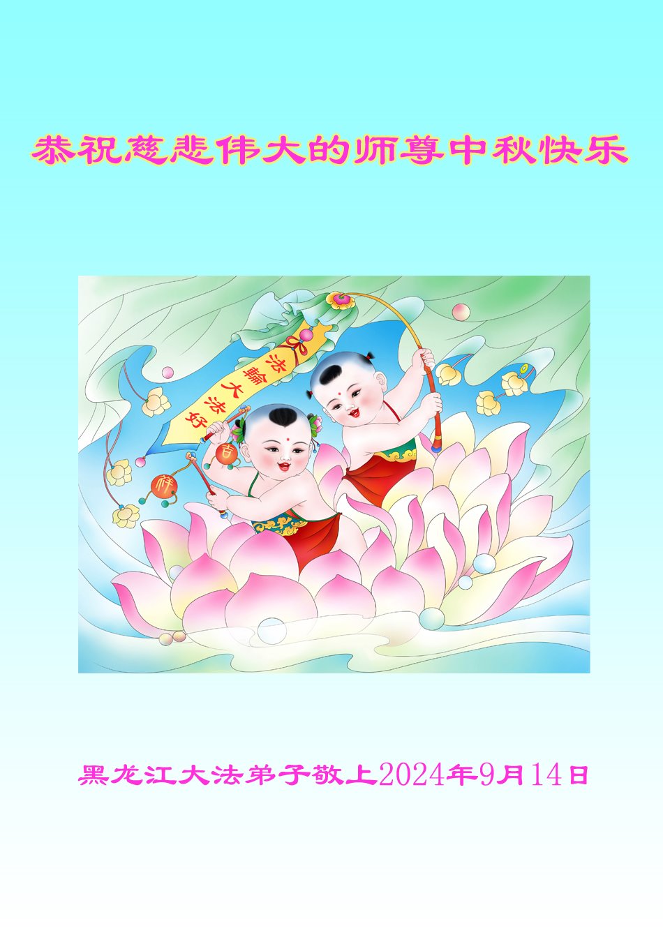 恭祝慈悲伟大的师尊中秋快乐! 祝师尊一切安好!早日与中国大陆大法弟子们团圆。弟子谢师恩! 黑龙江建三江洪河农场大法弟子叩拜 2024年中秋 |