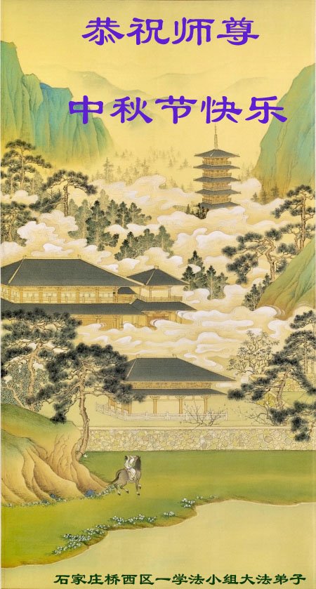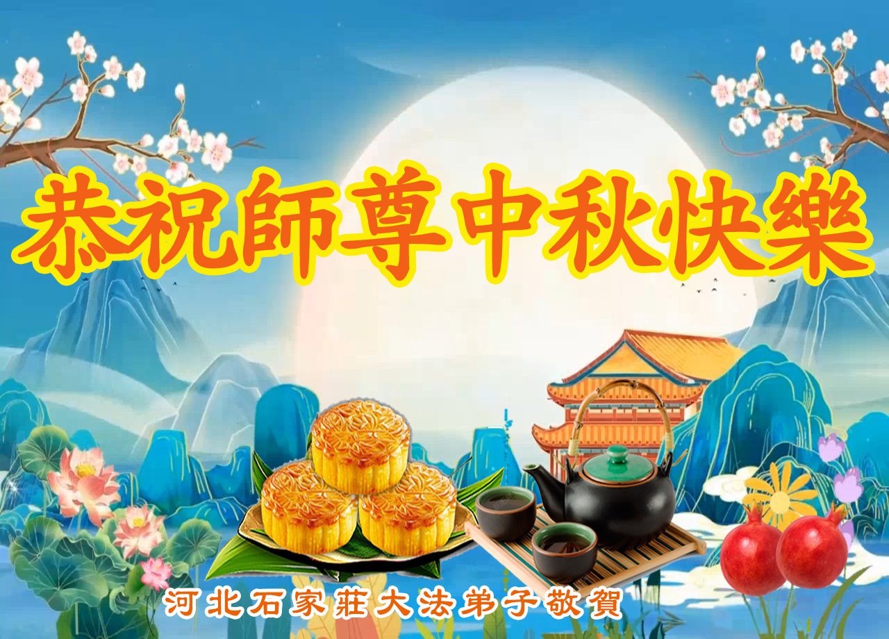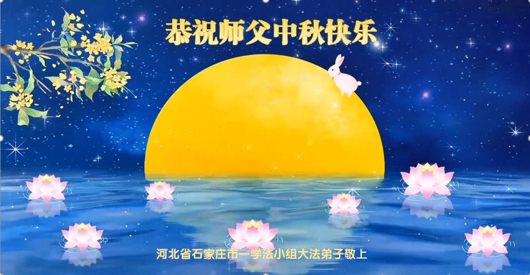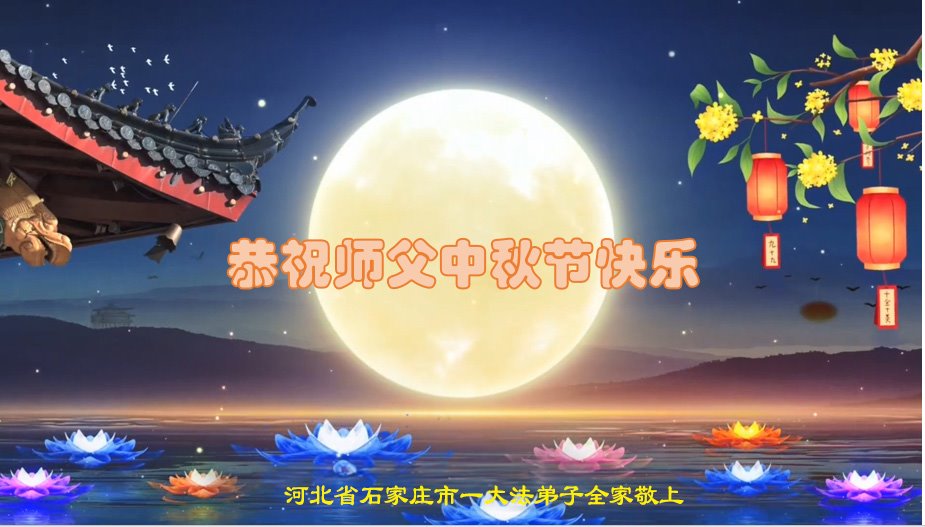 恭祝慈悲伟大的师尊中秋节快乐! 河北省石家庄市一大法弟子全家敬上 河北省石家庄市一学法小组大法弟子恭祝慈悲伟大的师尊中秋节快乐!