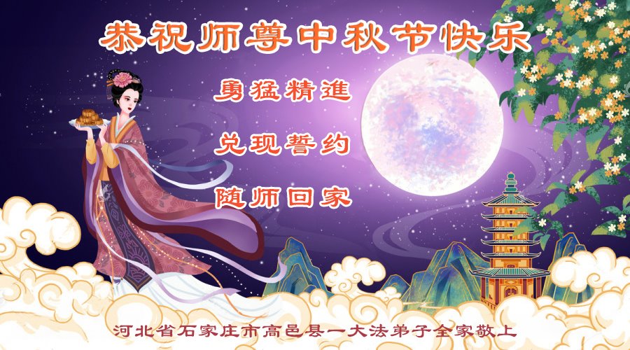 【明慧网二零二四年九月十七日】 河北省石家庄高邑县一大法弟子全家恭祝师尊中秋节快乐!