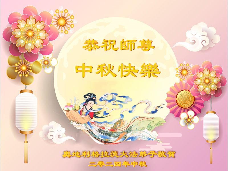 感恩 团圆夜下桂花树 嫦娥起舞伴玉兔 辗转轮回人生路 苦无数 泪珠扑簌簌 幸遇师尊慈悲度 心感恩 精進攀登步 奥地利格拉茨全体大法弟子敬贺师父中秋快乐!