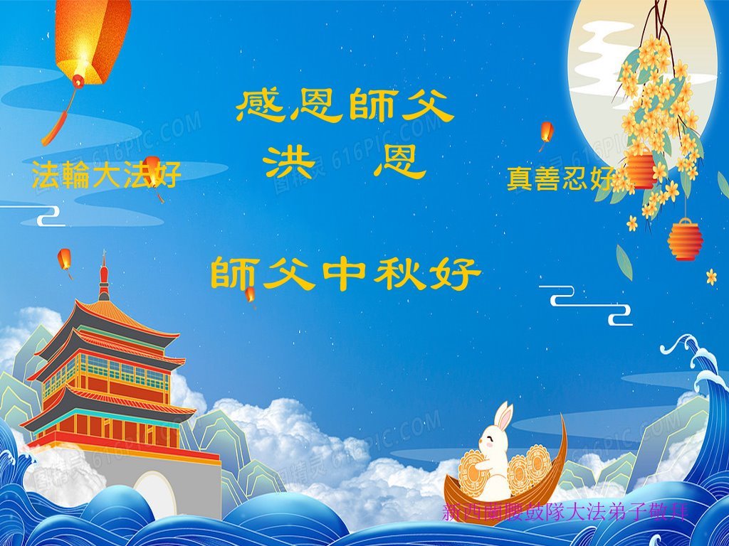 恭祝师父中秋快乐! 谢谢师父慈悲苦度!弟子叩拜师父! 澳大利亚墨尔本一新学员敬上 意大利大法弟子恭祝慈悲伟大的师尊中秋节快乐!