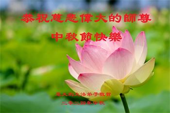 希腊大法弟子恭祝慈悲伟大的师父中秋节快乐!