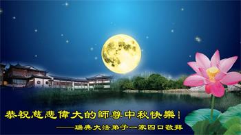 我会继续我的使命,精進实修,助师救度更多众生,修炼更加精進。感恩师尊,謝謝师尊! 瑞典大法弟子一家四口恭祝师尊中秋节快乐!