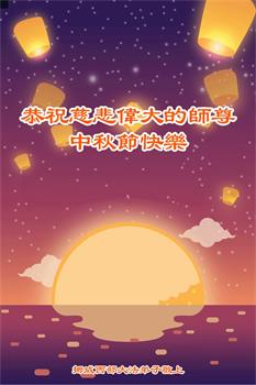 越修炼到最后,越想念师尊,恭祝师尊中秋节快乐!我每天都听师父的话,忙着打电话讲真相,多年来白天打营救电话,晚间劝三:退.,每天乐呵呵地,和同修配合的非常好。感激师父的加持!弟子今后要救度更多众生,完成师父赋予的历史使命,高高兴兴地跟师父回家。 香港全体大法弟子恭祝师尊中秋快乐!