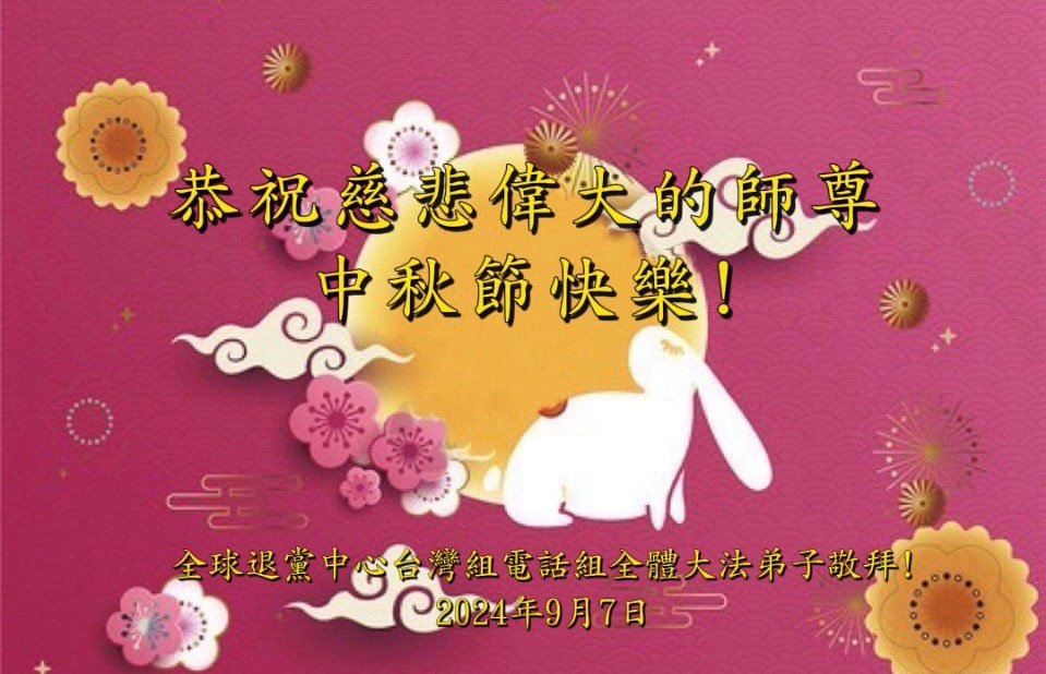 感恩师尊慈悲救度!弟子会做好三件事。 全球.退:党!中心台湾组电话组全体大法弟子恭祝师尊中秋节快乐!