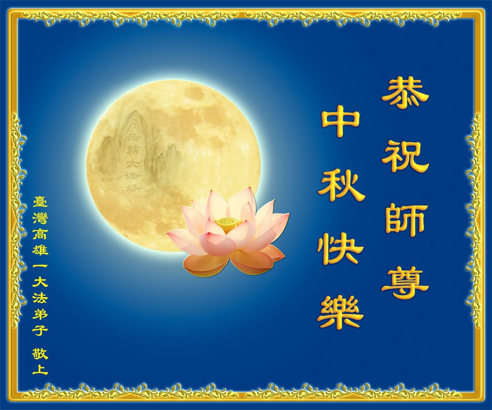 恭祝师父中秋节快乐! 中秋月圆家家欢,恭祝恩师笑开颜。 您为弟子承巨难,时时看护在身边。 弟子感恩无言表,唯有精進迎师还。 台湾高雄南区全体大法弟子敬上 台湾桃园市内坜一学员恭祝师尊中秋快乐!