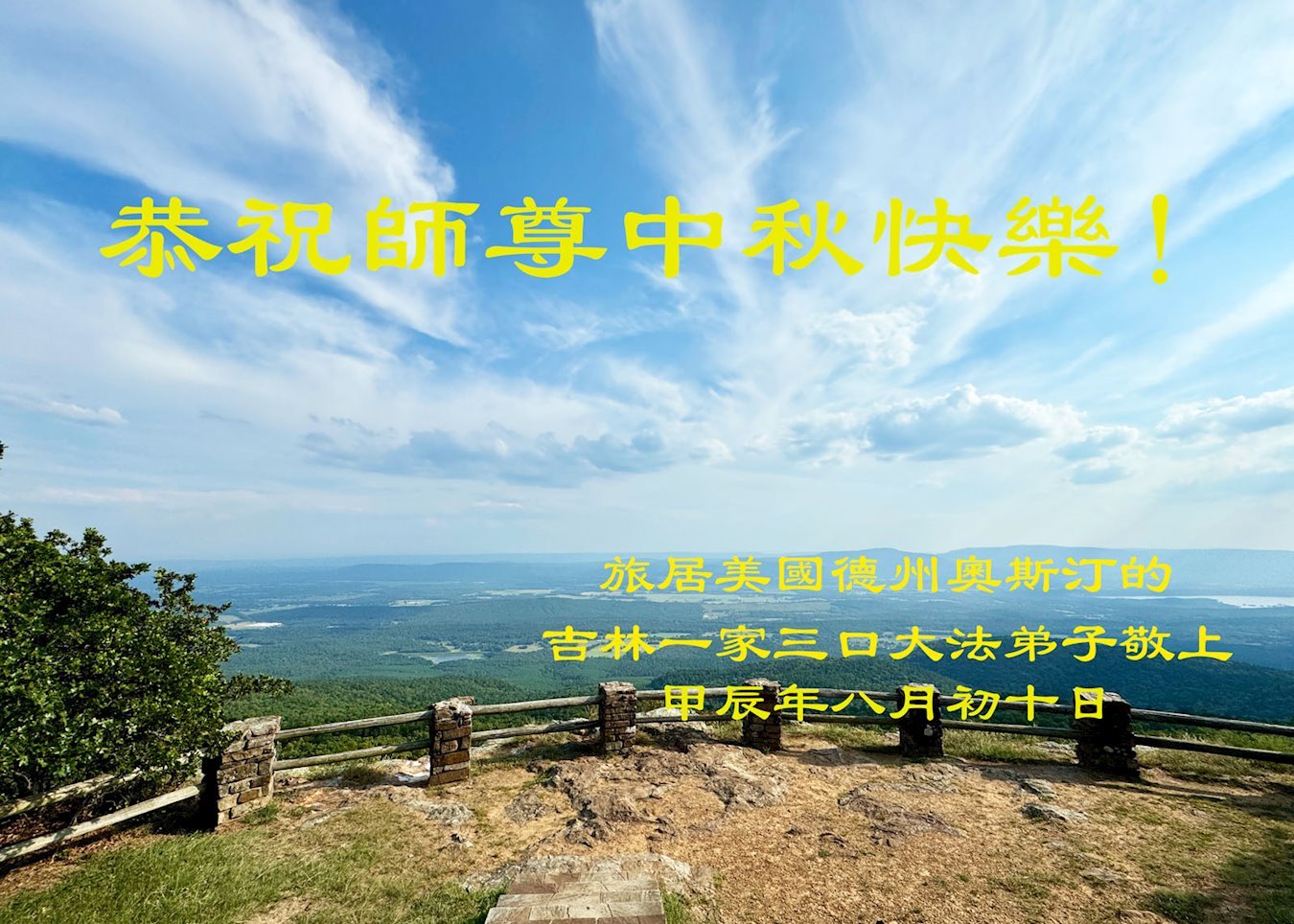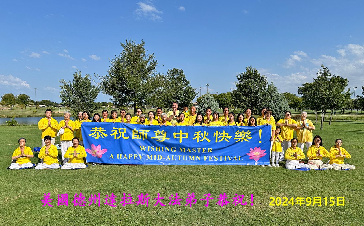 【明慧网二零二四年九月十七日】二零二四年中秋节来临之际,美国俄克拉荷马州、德州、阿肯色州大法弟子恭祝师尊中秋快乐! 美国达拉斯大法弟子恭祝慈悲伟大的师尊中秋快乐!