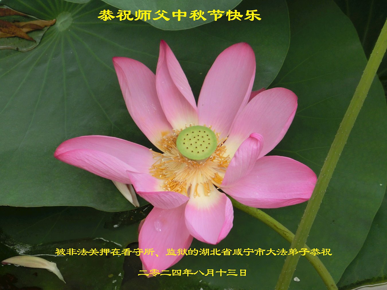 多谢师尊慈悲救度!师尊您辛苦了! 天净沙·中秋莲开 中秋莲开奇香 轻轻围绕师旁 真言真心吉祥 法展辉煌 圣王恩泽万方 被非法关押在黑龙江省呼兰监狱的大法弟子恭祝师尊中秋节快乐!