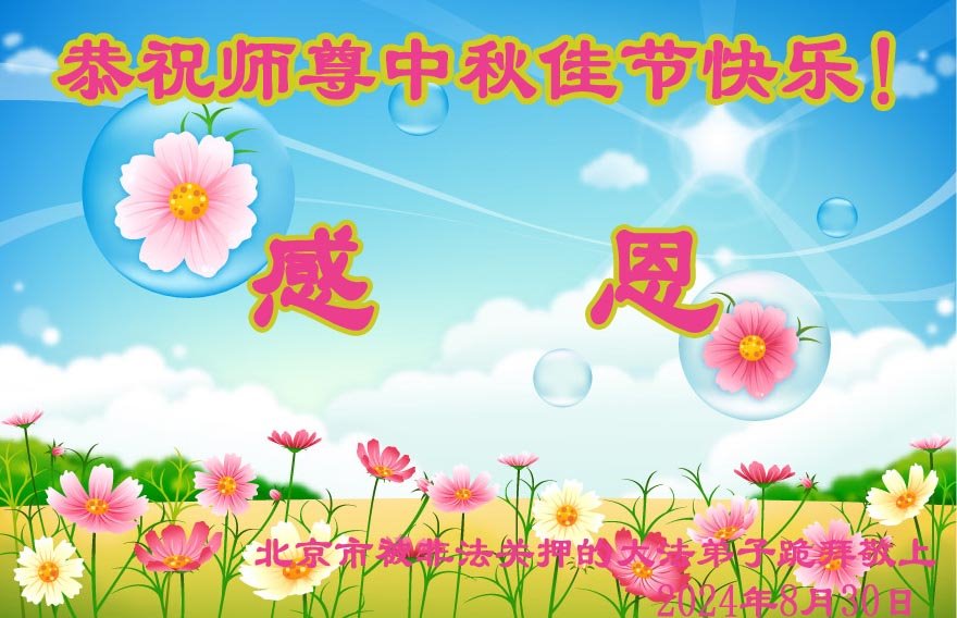 恭祝师尊中秋快乐!感恩师尊大法恩泽!身陷囹圄信师信法,修己救人精進高歌。 北京市被非法关押的大法弟子恭祝慈悲伟大的师尊中秋佳节快乐!