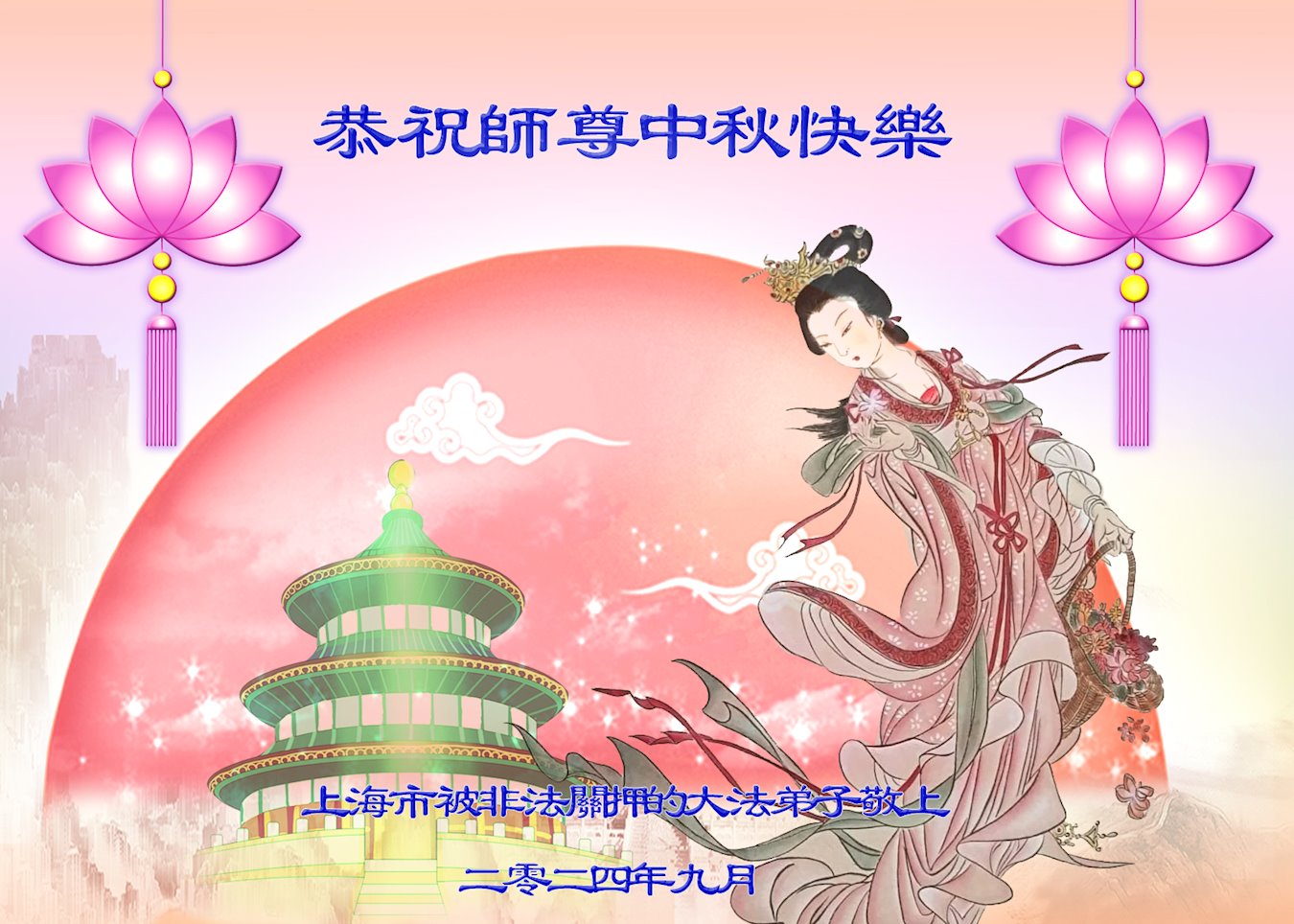 恭祝慈悲伟大的师尊中秋节快乐!辽宁抚顺市新宾县被非法关押的大法弟子敬上 浙江被非法关押的大法弟子恭祝师尊中秋节快乐!
