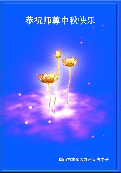 随师正法几十年 重塑金体意志坚 正法助师除邪恶 法徒想师泪涟涟 河北省沧州泊头市农村学法小组大法弟子敬上 河北省唐山市丰润区农村大法弟子恭祝师尊中秋节快乐!