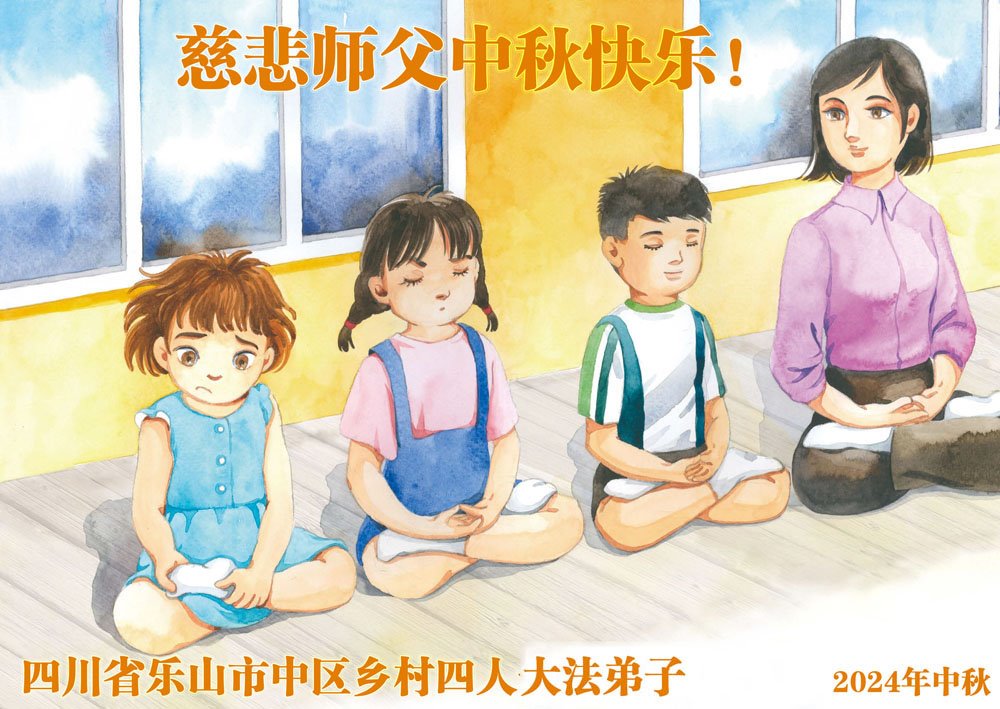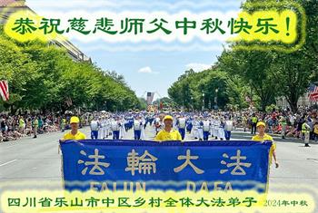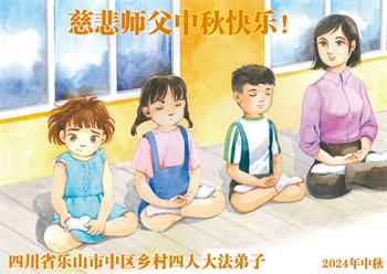四川省乐山市中区乡村四人学法小组大法弟子恭祝慈悲伟大师父中秋节快乐!