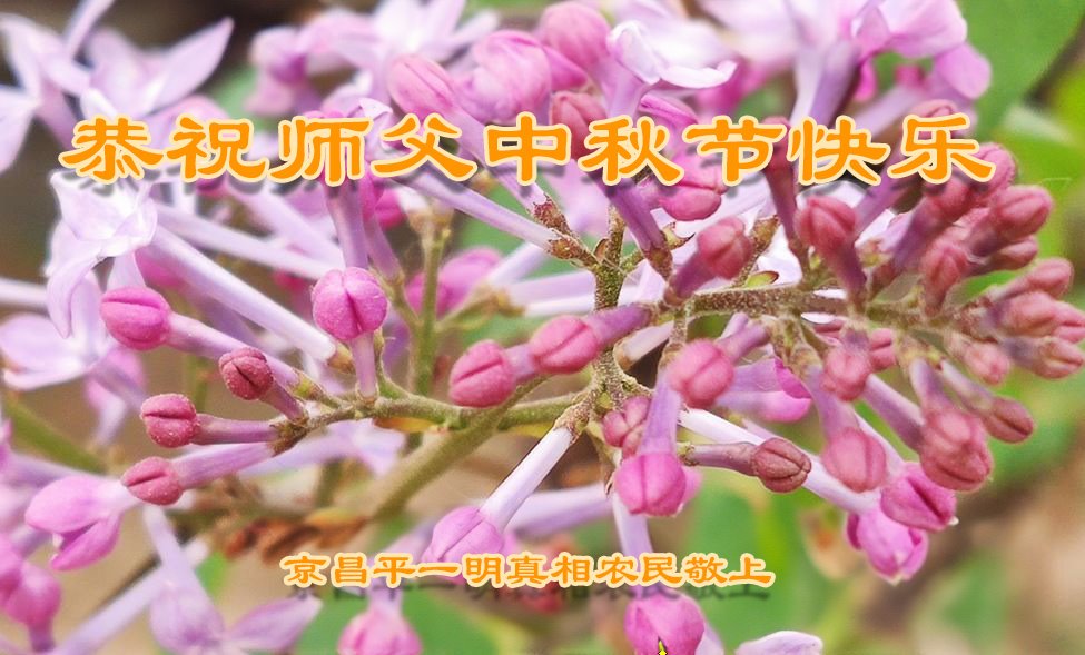 恭祝师父中秋节快乐! 北京市昌平区一明真相农民大法弟子敬上 北京市昌平区农村老年大法弟子敬祝李洪志师父中秋节快乐!