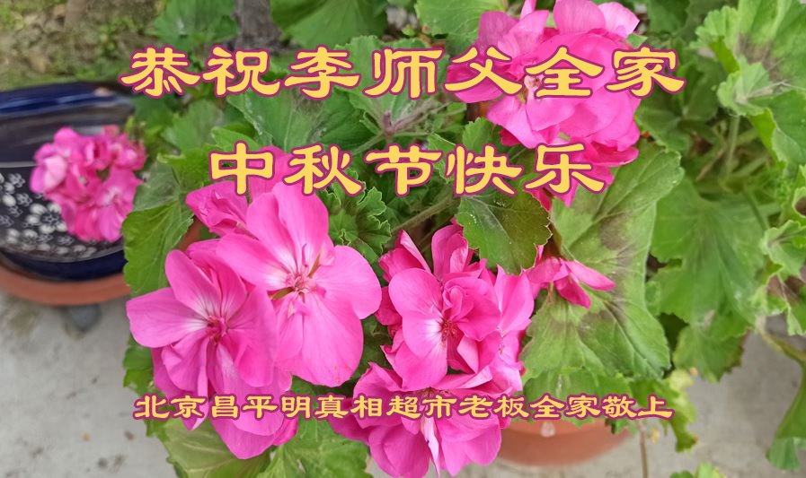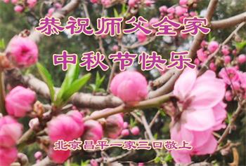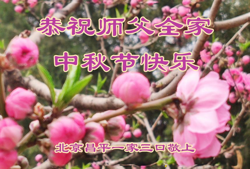 恭祝师尊中秋节快乐! 北京市昌平区一大法弟子代表双方父母兄弟姐妹十七口人敬上 北京市昌平区明真相超市老板全家恭祝李师父全家中秋节快乐!