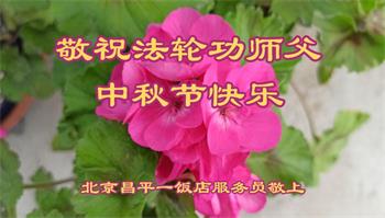 恭祝法轮功师父中秋节快乐! 北京市昌平区一饭店服务员敬上 北京市昌平区一大法弟子代表双方父母兄弟姐妹十七口人恭祝师尊中秋节快乐!