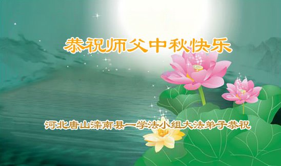 中秋话团圆 弟子盼师还 普天同欢庆 光耀天地间 恭祝师父中秋节快乐! 河北唐山滦南县一大法弟子敬上 河北唐山滦南县一学法小组大法弟子恭祝师父中秋快乐!
