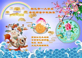 【明慧网二零二四年九月十八日】 山东省烟台市招远市区大法弟子给师尊的中秋问候!