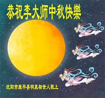 弟子代明白真相的世人,感谢师父的洪恩救度。 北京市昌平区马池口镇大法弟子敬上 辽宁省沈阳市康平县大法弟子家人恭祝李大师中秋快乐!
