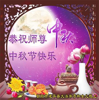 辽宁朝阳姐妹同修敬上 辽宁朝阳一学法小组大法弟子恭祝慈悲伟大的师尊中秋快乐!