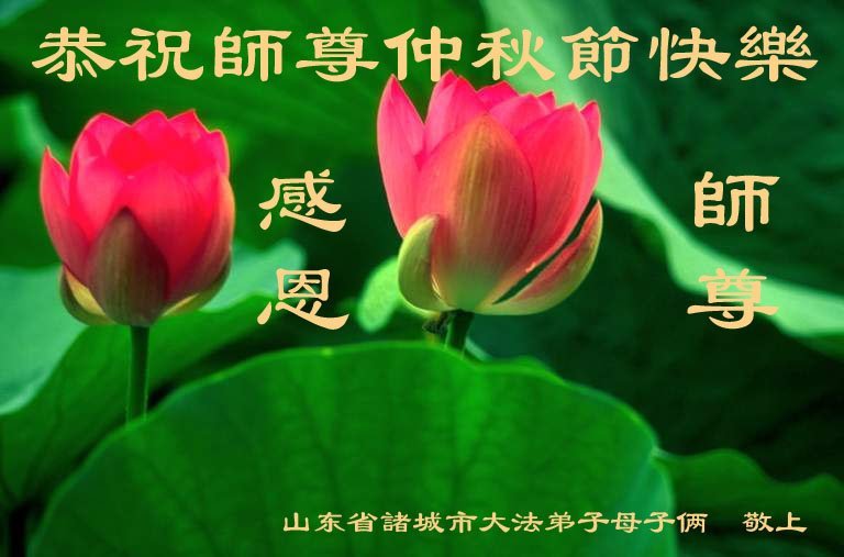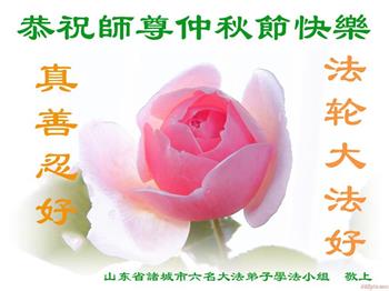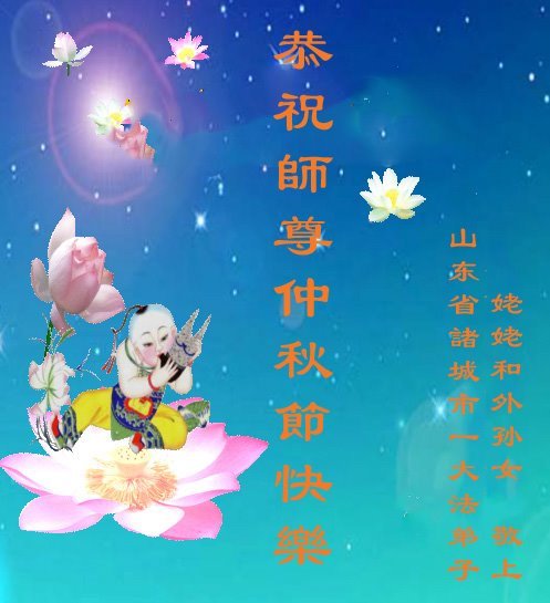 恭祝师尊中秋节快乐! 山东潍坊诸城四位大法弟子敬上 山东潍坊昌乐一大法弟子恭祝师父中秋节快乐!