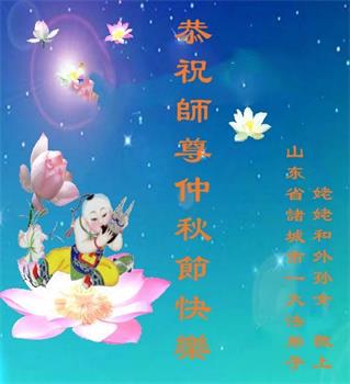 感恩师尊对弟子及家人的慈悲保护!弟子对师尊的感恩与崇敬无以言表,唯有更加精進,做好三件事,才是对师父最大的报答。 山东省潍坊大法弟子恭祝师尊中秋快乐!