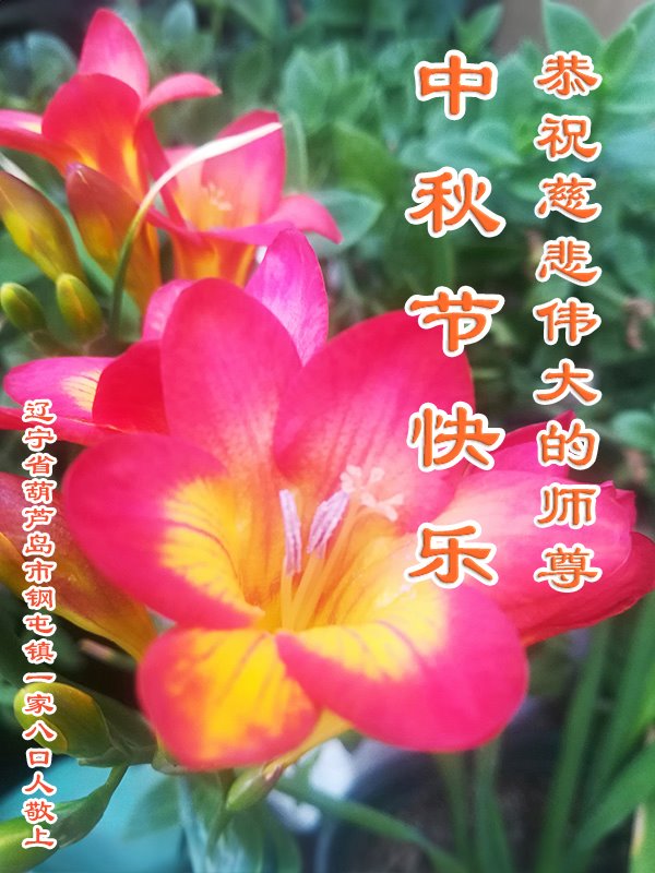 恭祝师尊中秋快乐! 辽宁省葫芦岛市新区二姐妹大法弟子敬上 辽宁省葫芦岛市新区全体大法弟子恭祝师尊中秋快乐!