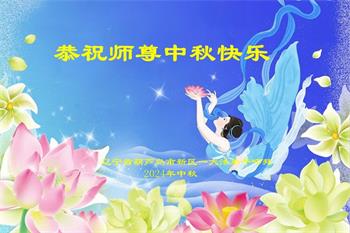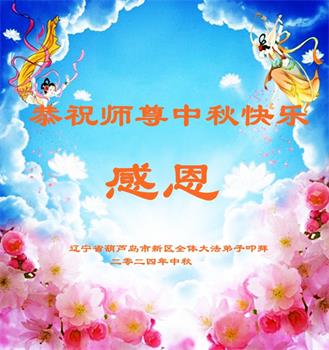 祝愿师父您中秋节快乐! 谢谢师父给了我们宇宙大法“真善忍”的法理,叫我们做最好的人。在修炼路上,一路保护我们。师父您辛苦了!我们为不辜负您的厚望、苦度,在有限的时间里,做好三件事,多学法,多炼功,修好自己,多救人,兑现史前大愿,报师父洪恩,跟师父一起回家。 辽宁省葫芦岛市连山区化机地区大法弟子敬上 二零二四年九月七日 辽宁省葫芦岛市连山区东城大法弟子恭祝慈悲伟大的师尊中秋节快乐!