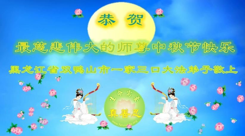 恭祝慈悲伟大的师尊中秋佳节快乐! 黑龙江省双鸭山市大法弟子敬上 黑龙江省双鸭山市两位大法弟子恭祝慈悲伟大的师尊中秋佳节快乐!