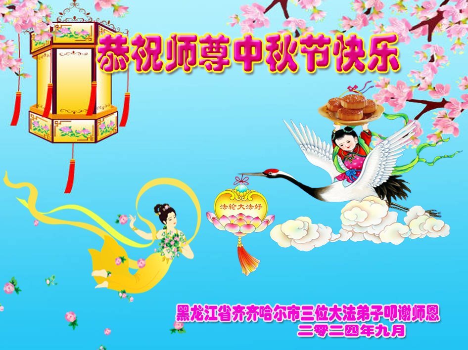 【明慧网二零二四年九月十八日】 黑龙江省齐齐哈尔市富拉尔基区大法弟子恭祝师父中秋节快乐!