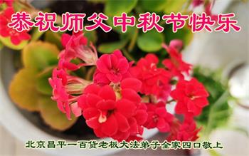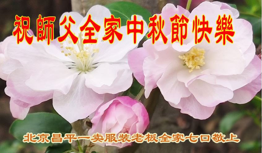 恭祝师尊中秋节快乐! 北京市昌平区一百货老板全家四口大法弟子敬上 北京市昌平区一清洁工全家六口大法弟子恭祝师父中秋节快乐!