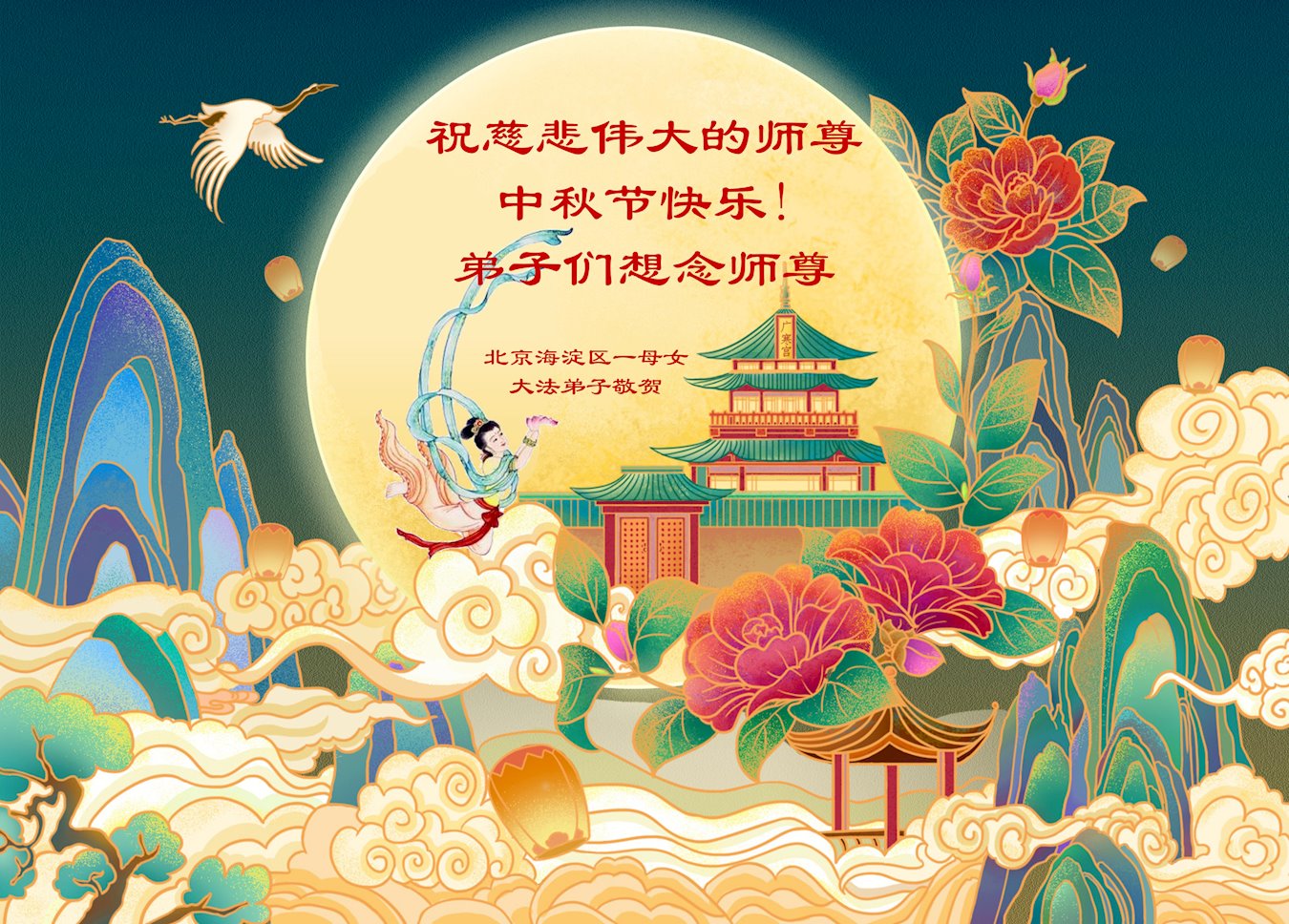 恭祝慈悲伟大的师尊中秋节快乐! 弟子们想念师尊。 北京市海淀区母女大法弟子敬上 北京昌平十三陵大法弟子恭祝师尊中秋快乐!