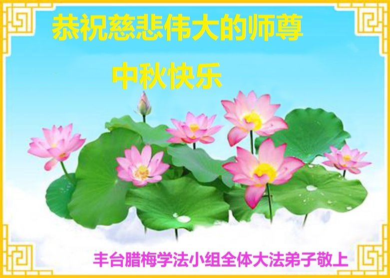 【明慧网二零二四年九月十八日】 北京丰台腊梅学法小组全体大法弟子恭祝师尊中秋快乐!感谢慈悲伟大的师尊慈悲的救度!