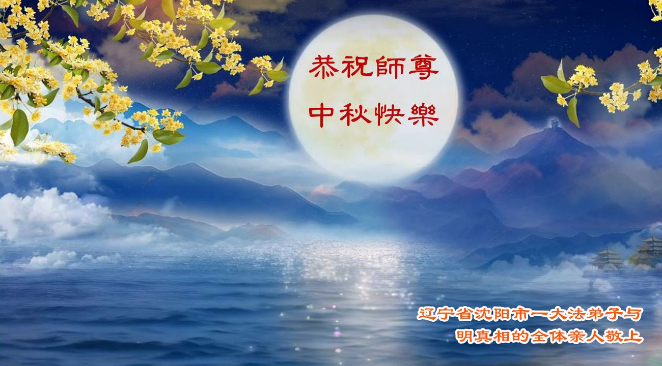 恭祝师尊中秋快乐! 广东省汕尾市海丰县部份大法弟子和小弟子及明白真相的家属敬上 山东潍坊明白真相的三口之家祝慈悲伟大的李大师中秋节快乐!