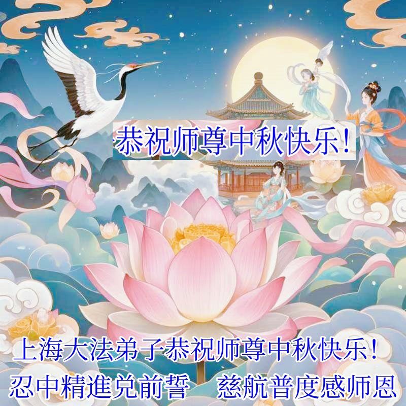师尊: 敬贺师尊中秋快乐! 感恩师尊慈悲苦度 上海浦东大法弟子 上海一学法小组大法弟子恭祝师尊中秋快乐!
