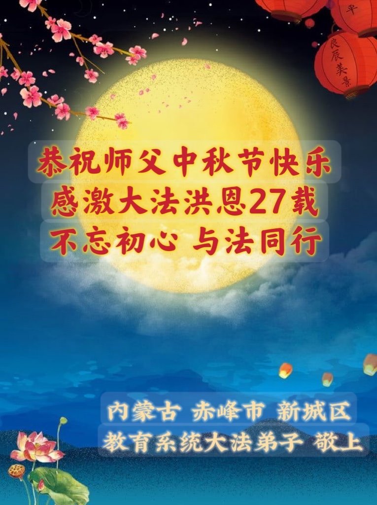 内蒙古赤峰市新城区教育系统大法弟子恭祝师父中秋节快乐!