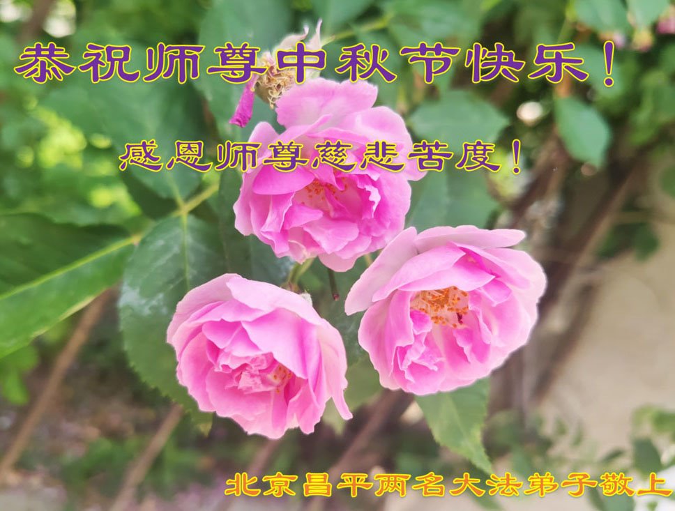 感恩师尊慈悲苦度!弟子今后做好三件事,走好修炼路,多救众生,跟师尊回家。 北京昌平两名大法弟子恭祝师尊中秋节快乐!