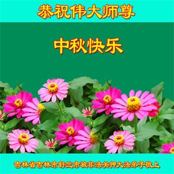 弟子们要精進实修,修好自己,助师正法,多救众生,以报师恩! 吉林市一学法小组全体大法弟子敬上 吉林省吉林市一名九十岁老年大法弟子恭祝师尊中秋节快乐!