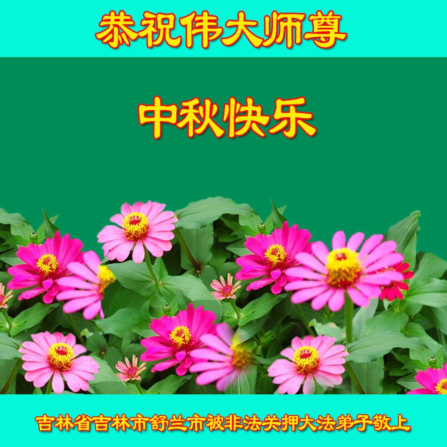 感恩师尊慈悲救度! 弟子们一定努力精進实修,做好三件事,随师救度众生,返家园。 吉林省吉林市一老年大法弟子恭祝师尊中秋节快乐!